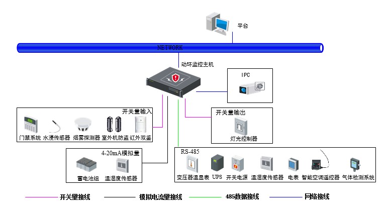 ●最新的485協(xié)議動態(tài)庫,業(yè)界領(lǐng)先。設(shè)備接入方式支持:UPS、開關(guān)電源、交流電表、溫度濕度傳感器、氣體檢測系統(tǒng)、空調(diào)控制器、變壓器溫顯表、蓄電池組、門禁控制器、熱交換設(shè)備、位置服務(wù)模塊、發(fā)電機組、低壓配電設(shè)備、新能源供電系統(tǒng)、鐵塔UPS設(shè)備、直流電表、分路計量設(shè)備、鍵盤。